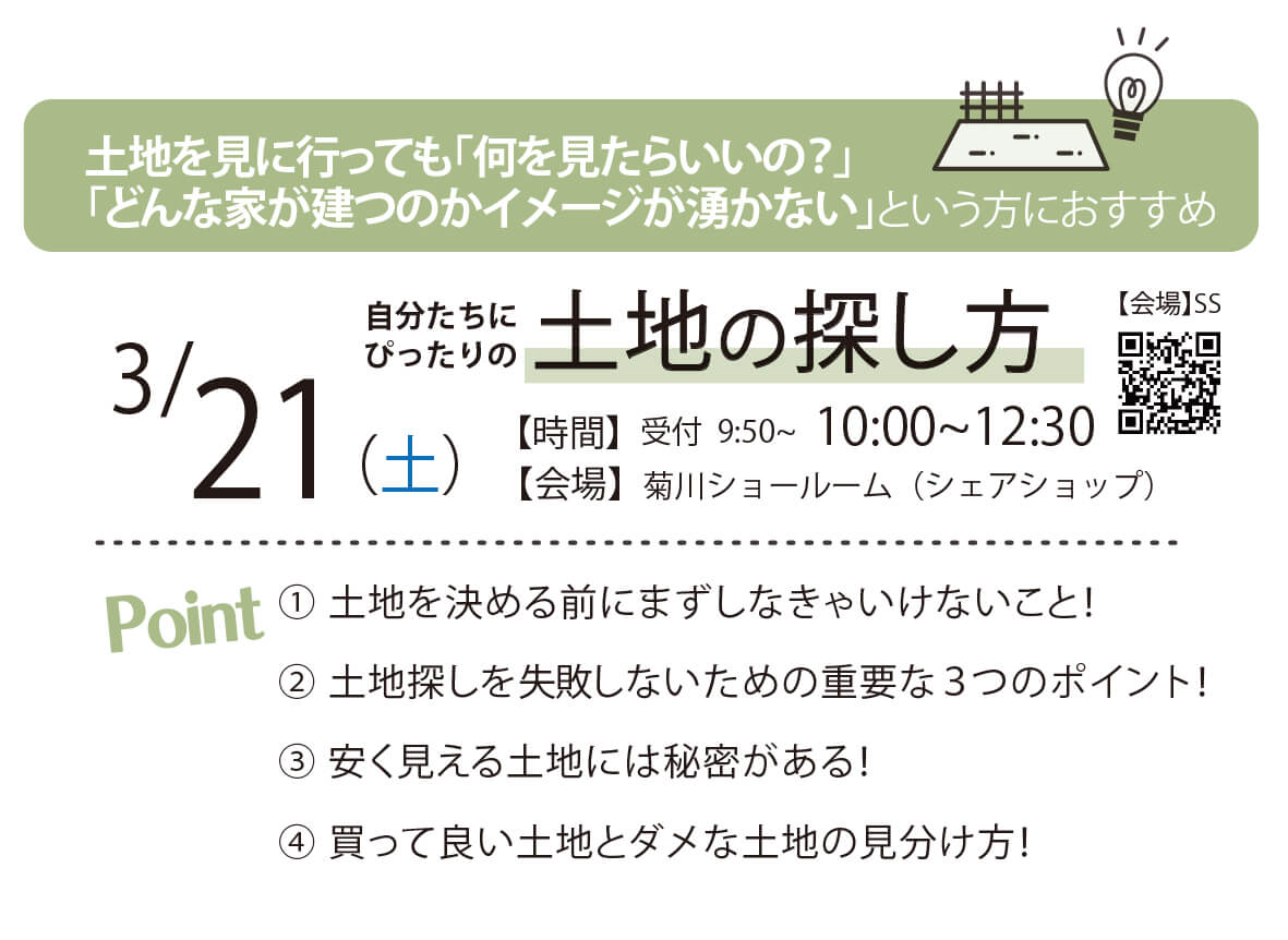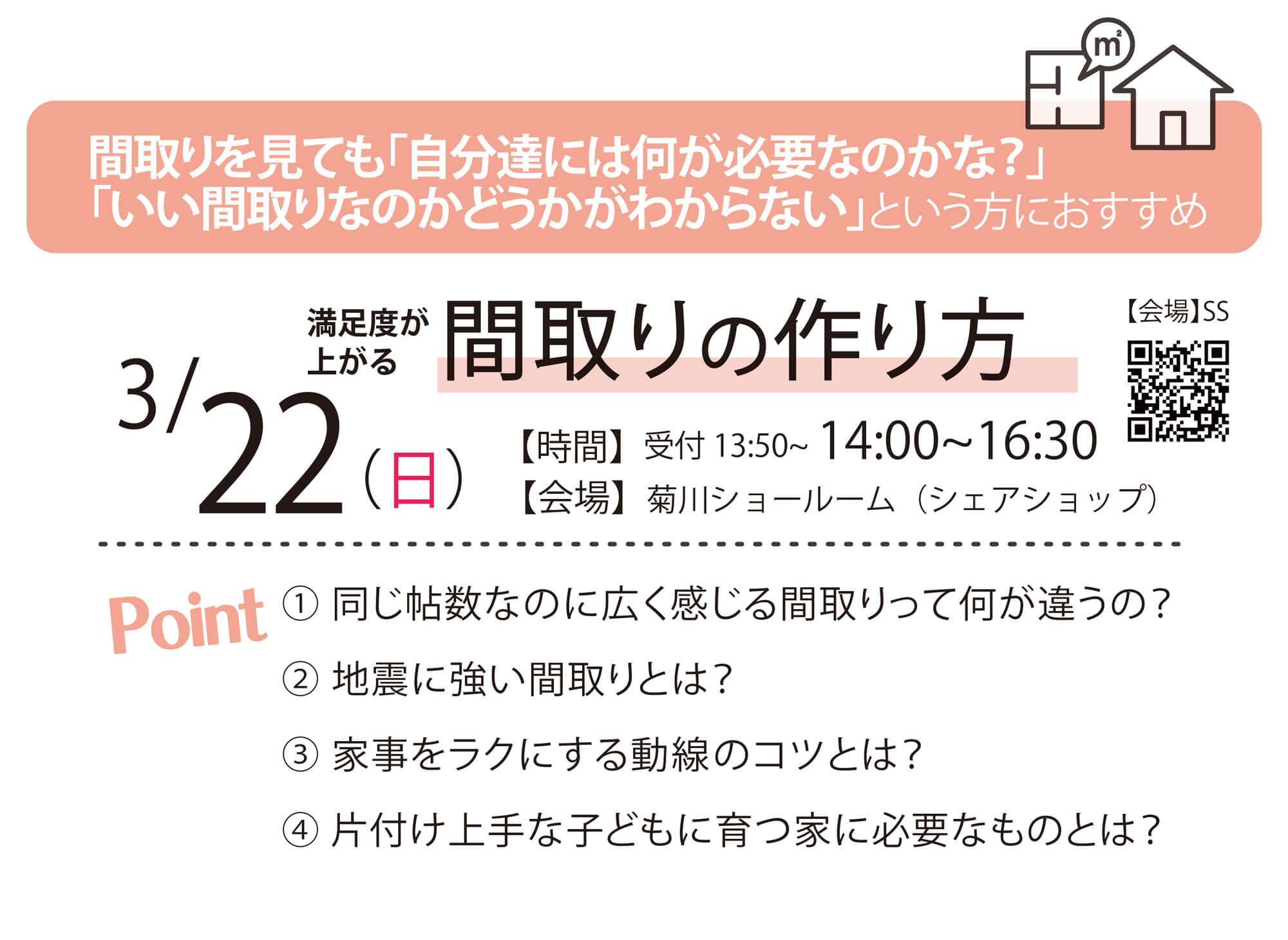 時間・場所 :教室ごとの詳細をご覧ください*・3月21日(土)・22日(日):菊川ショールーム(シェアショップ)