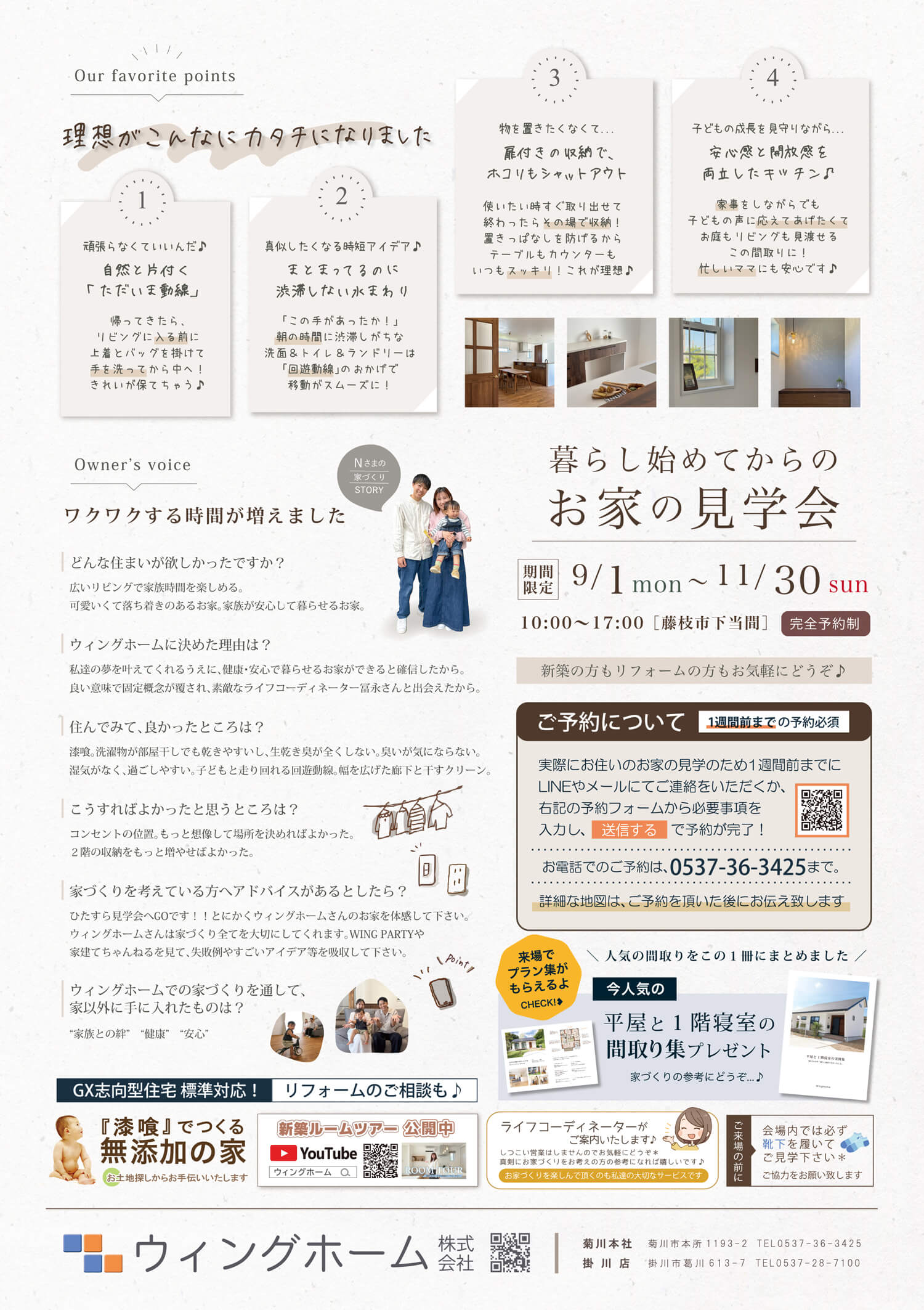 見学会ではお施主様の思いをゆったりと感じていただき、皆様の住まいづくりの参考にしていただけたらと思います。