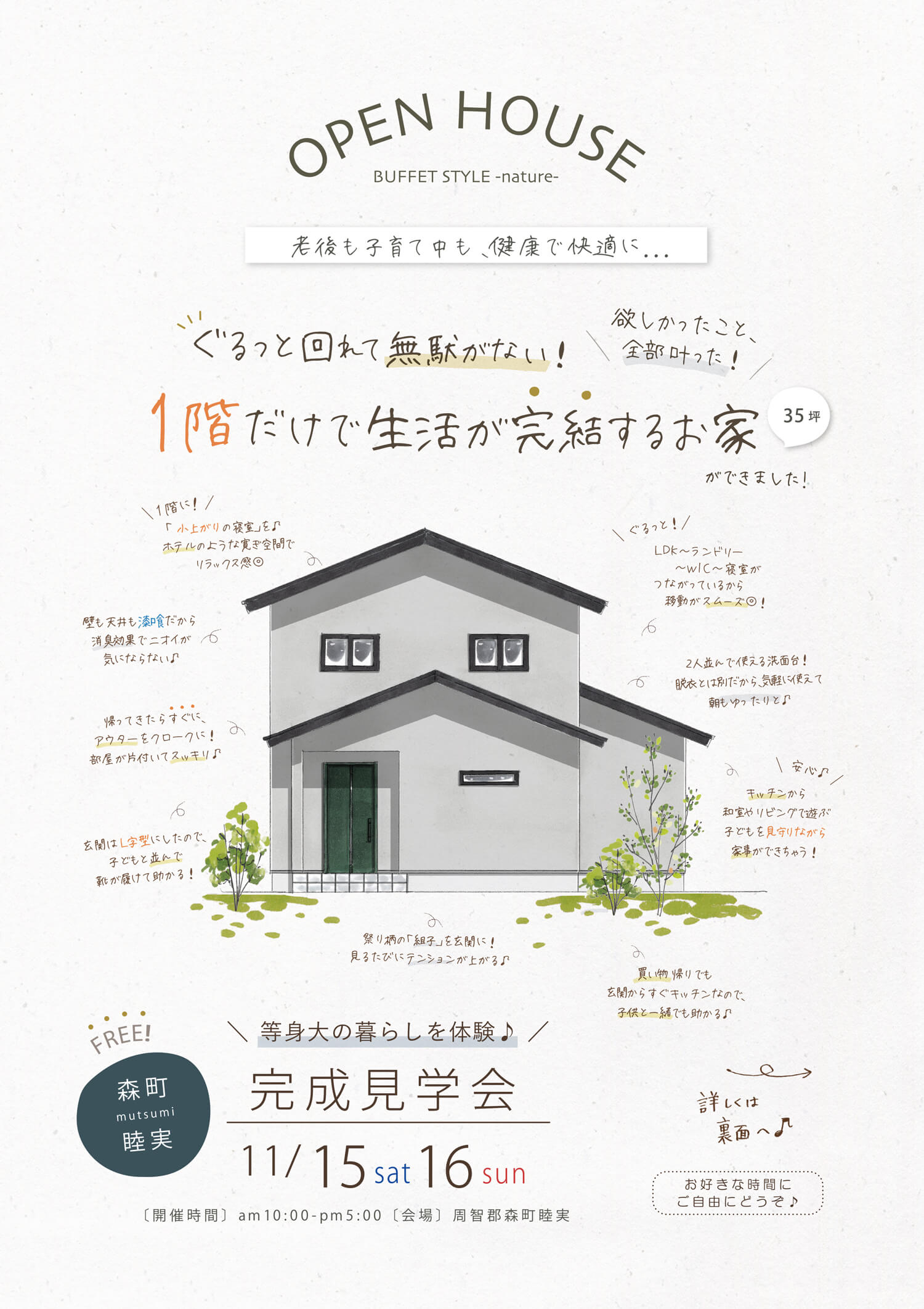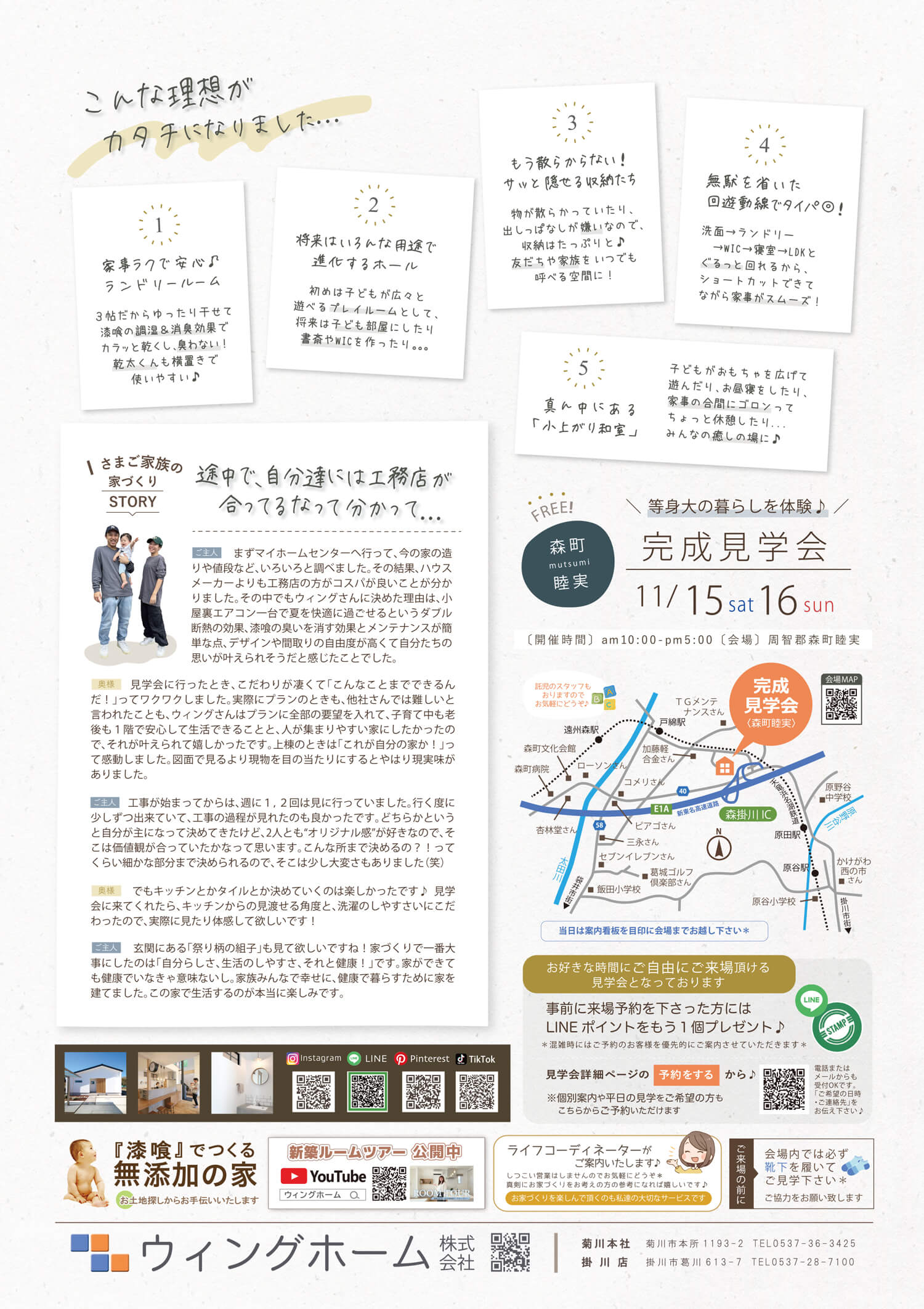 時間・場所 | :10:00~17:00【今回はお好きな時間にご自由にお越しいただける見学会です※ご予約不要】・周智郡森町睦実 |