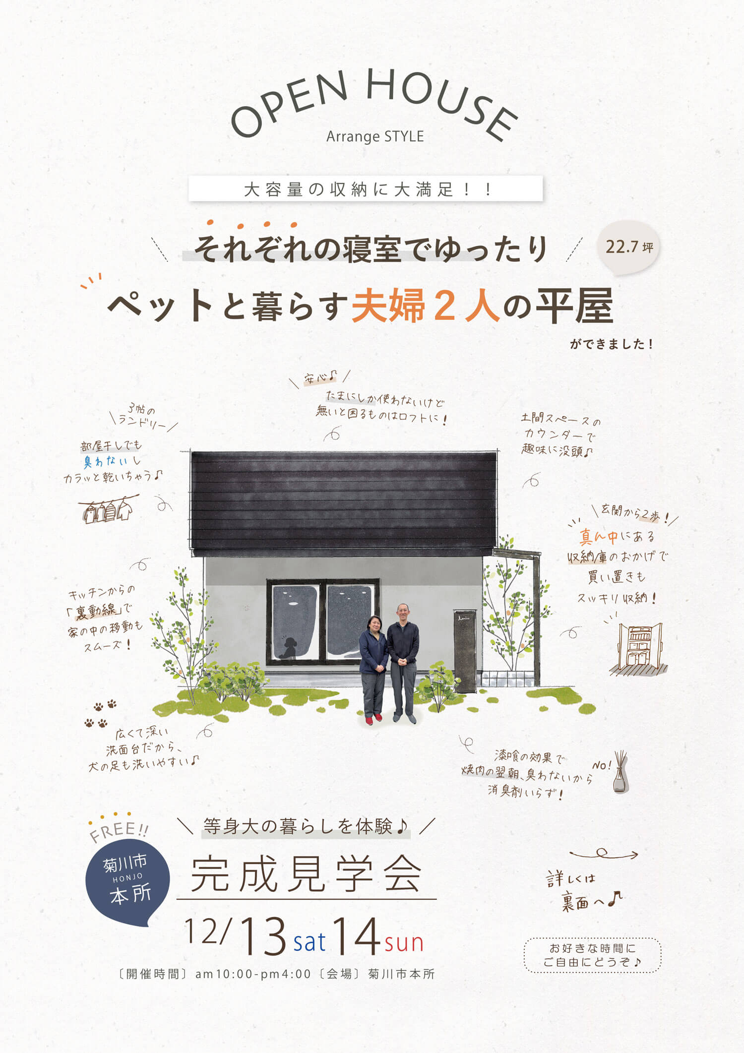 | 時間・場所 | :10:00~16:00【今回はお好きな時間にご自由にお越しいただける見学会です※ご予約不要】・菊川市本所 |