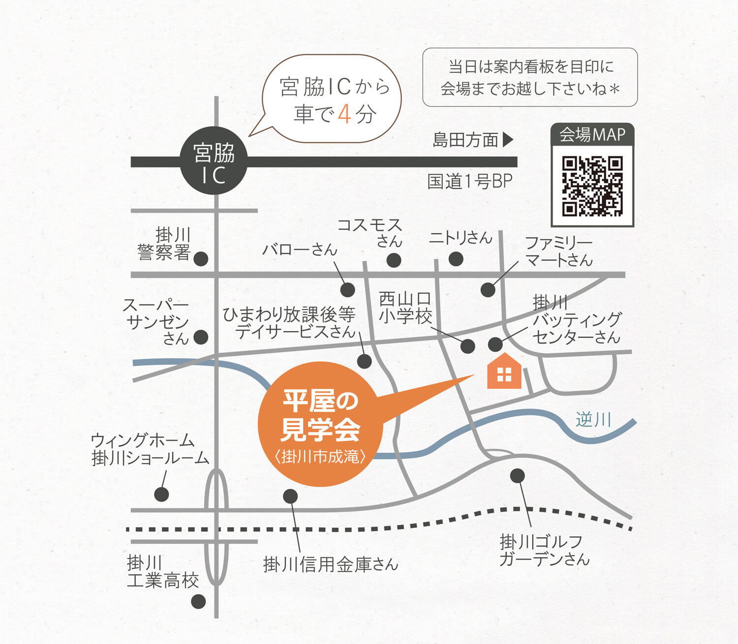 | 時間・場所 | :10:00~16:00【今回はお好きな時間にご自由にお越しいただける見学会です※ご予約不要】・掛川市成滝 |