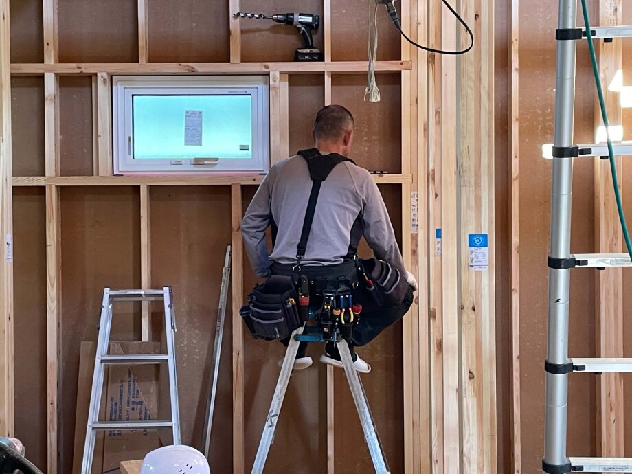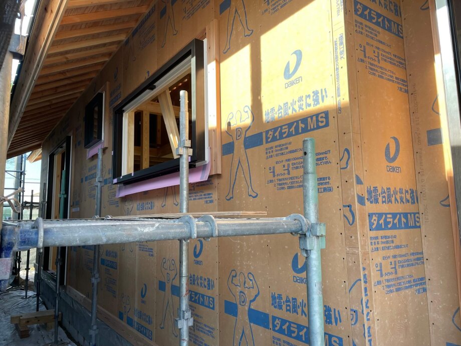 サッシの枠も取り付けが進んでいました。