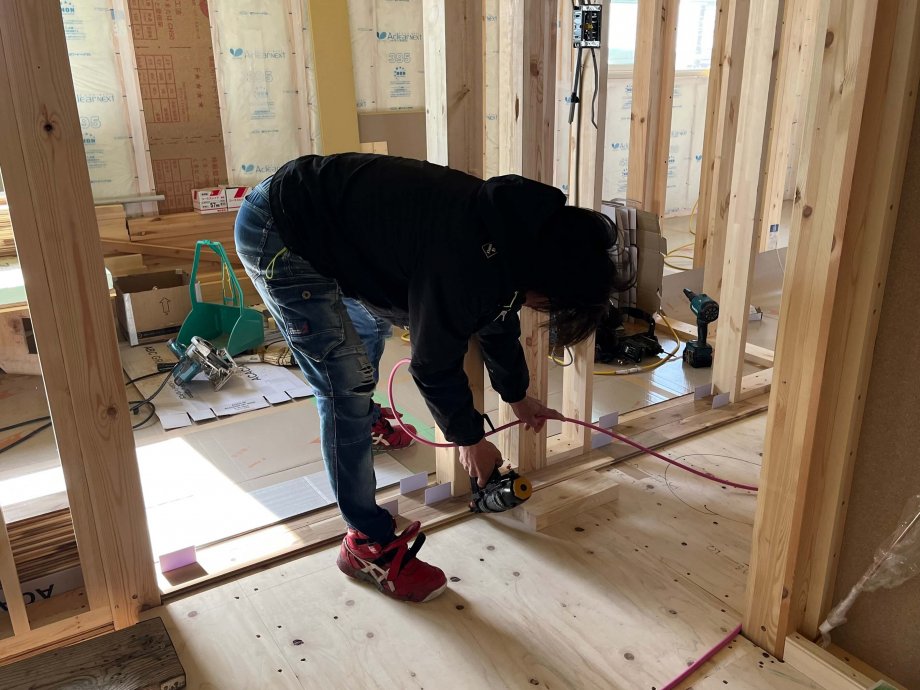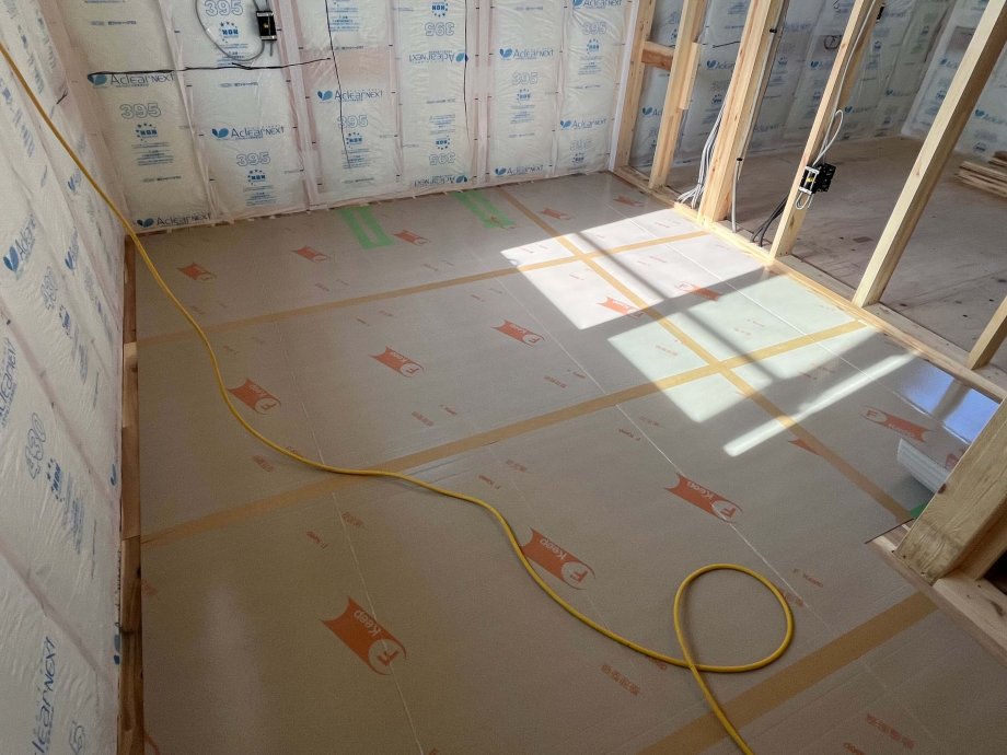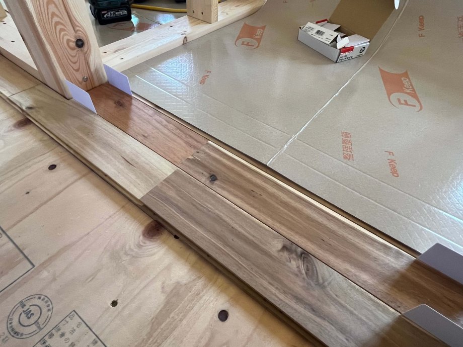 2階で床を張っていましたよ。