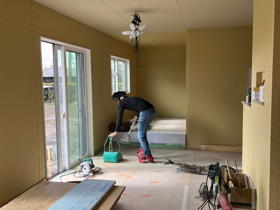 中に入ると大工さんは掃除中。