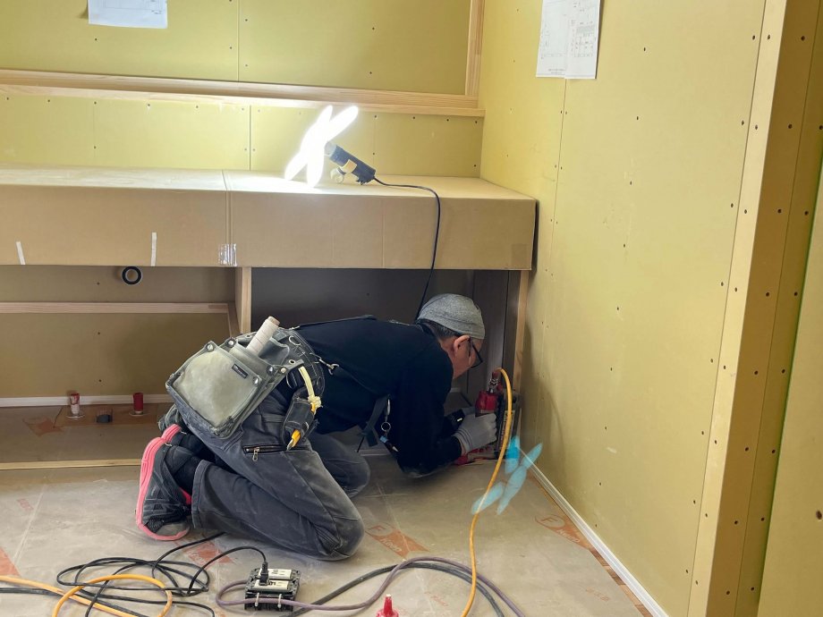 電気屋さんも作業に入っていました。