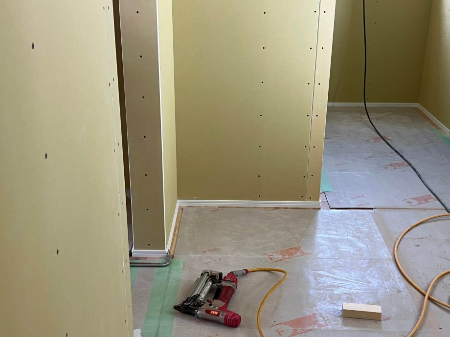 大工さんは巾木の施工中。