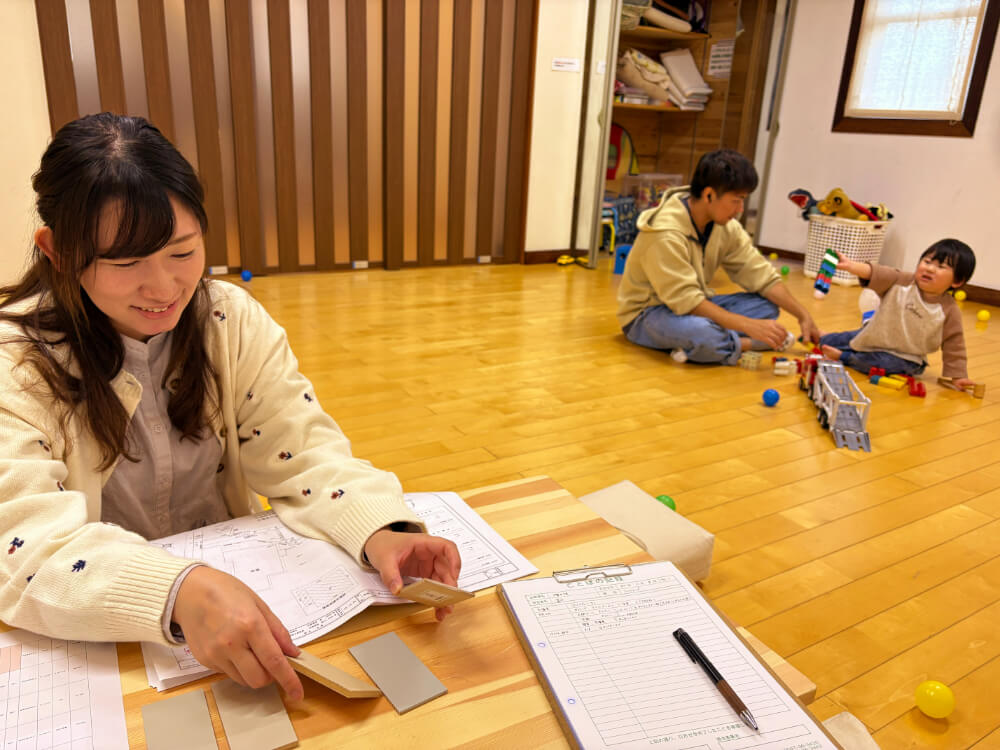 お打合せ中も奥様がゆっくり打合せに向き合えるようお子さんと遊んでくれる優しさが素敵なご主人様です*