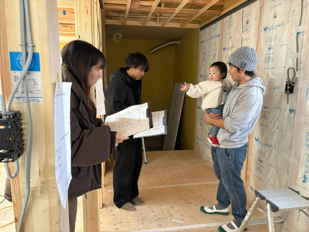 午後は建築中のお家にてお打合せ!