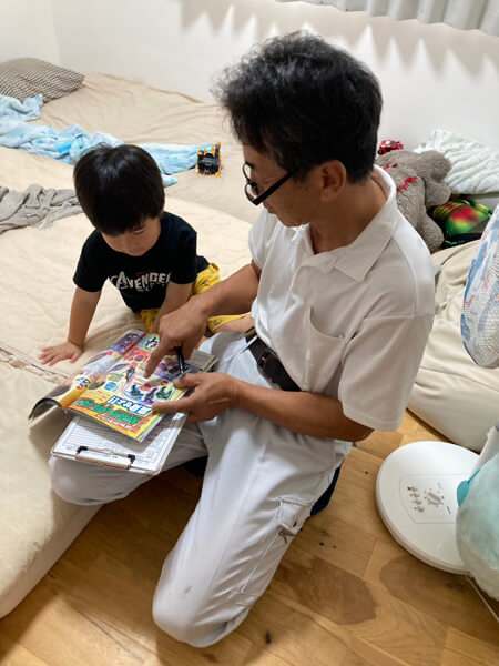 懐いている息子や娘を見ながら和やかに点検を進めてもらいました。