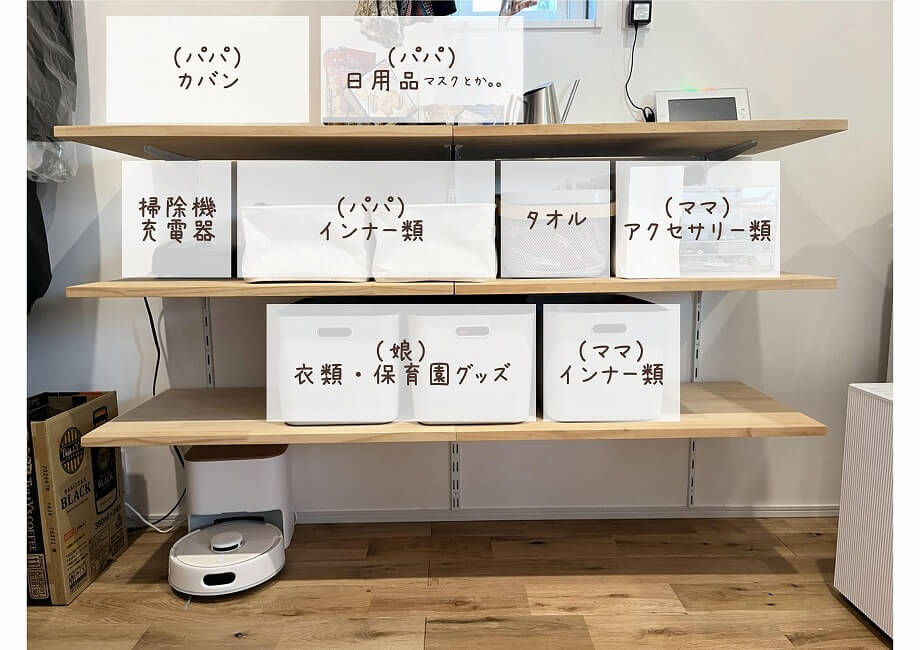 バスタオルやパジャマ、下着類は、浴室近くの脱衣室の棚に置いています。