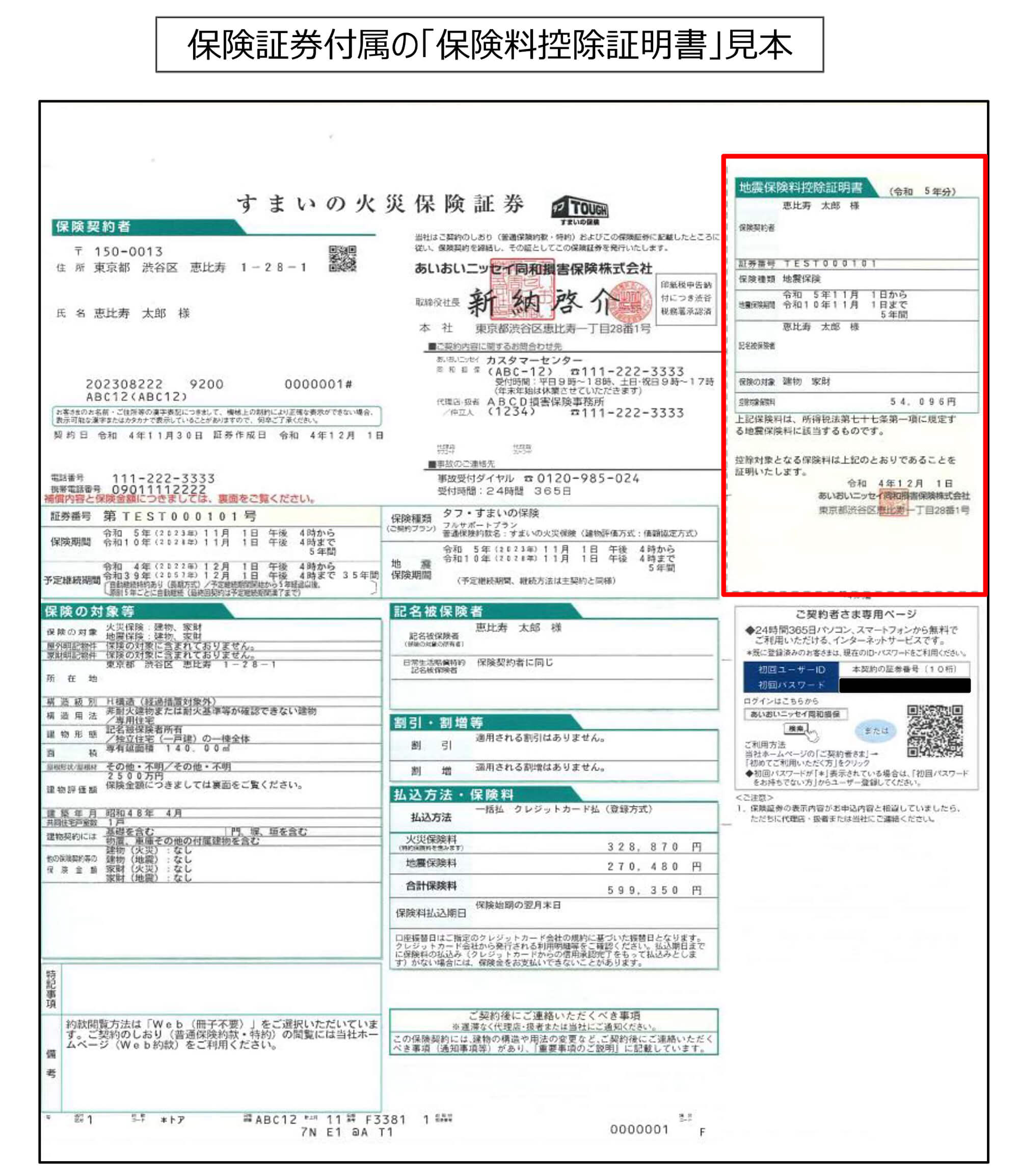 加入した初年度は保険証券の下部または右横に「地震保険料控除証明書」が付属