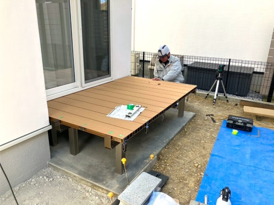 見学会前にはウッドデッキの施工も行いました。
