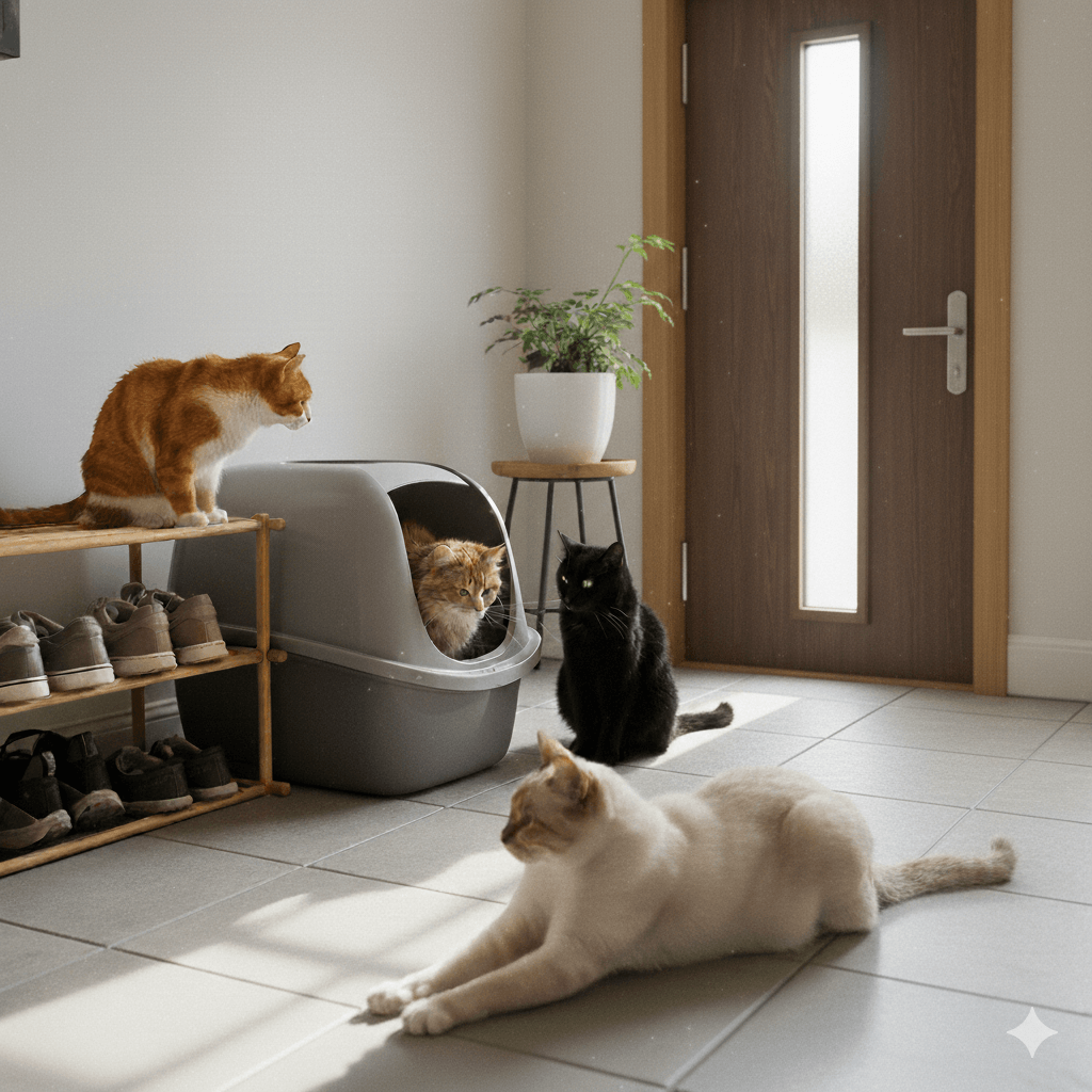 我が家は多頭飼いなので数は多いですが、玄関に3個、勝手口に1個、2階に1個の計5個置いてあります。