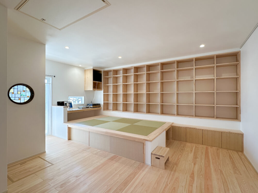 40枚以上の絵画が小上がり下にすっきり収まります°˖✧