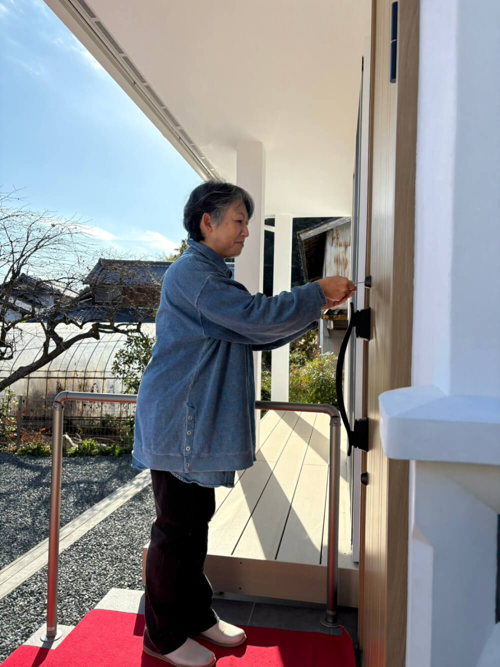 みんなから見守られながら、テープカットと鍵を開けていただき早速お家の中へ*