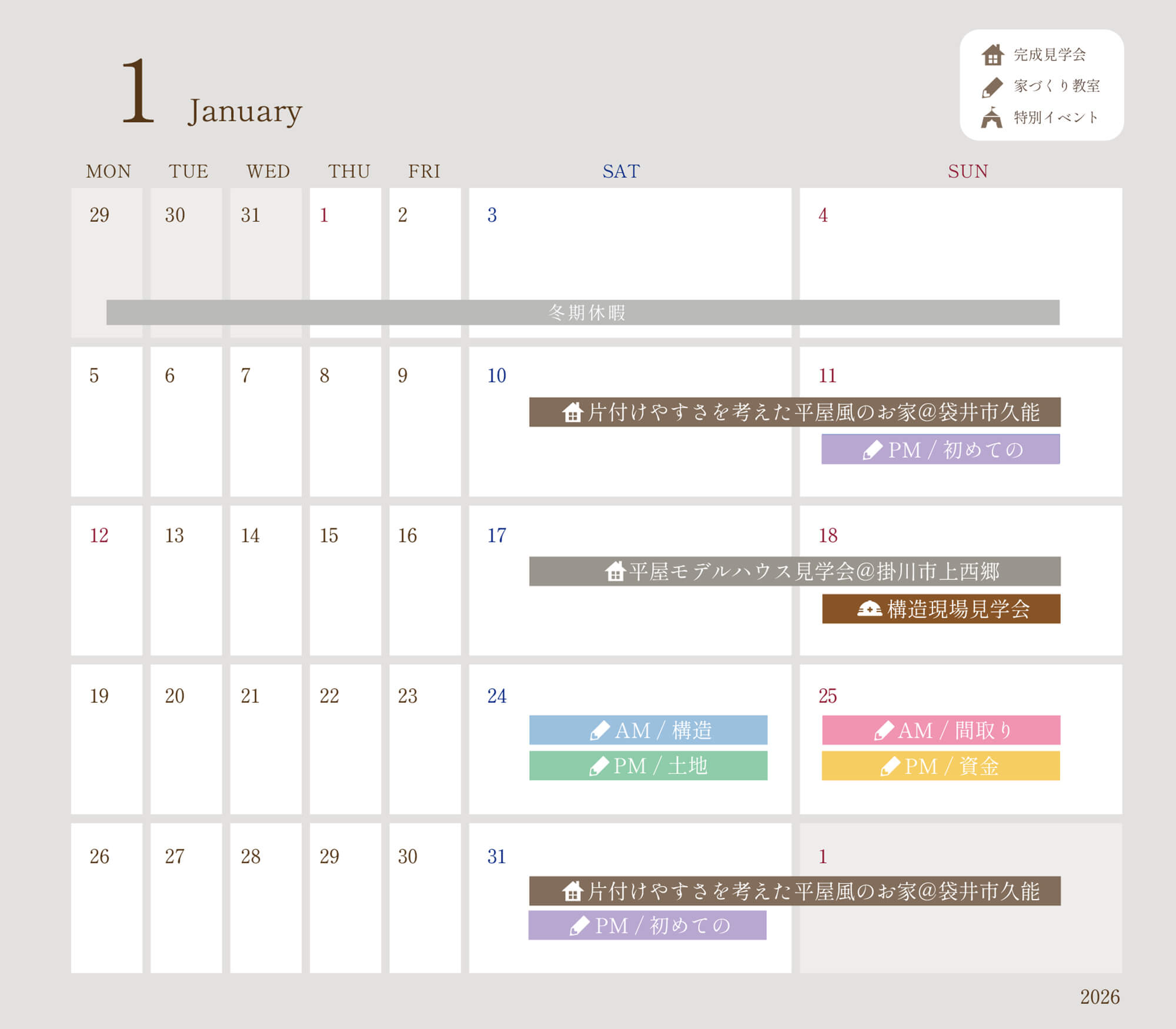 年明け1月~も見学会や家づくり教室など、イベントが盛りだくさん!