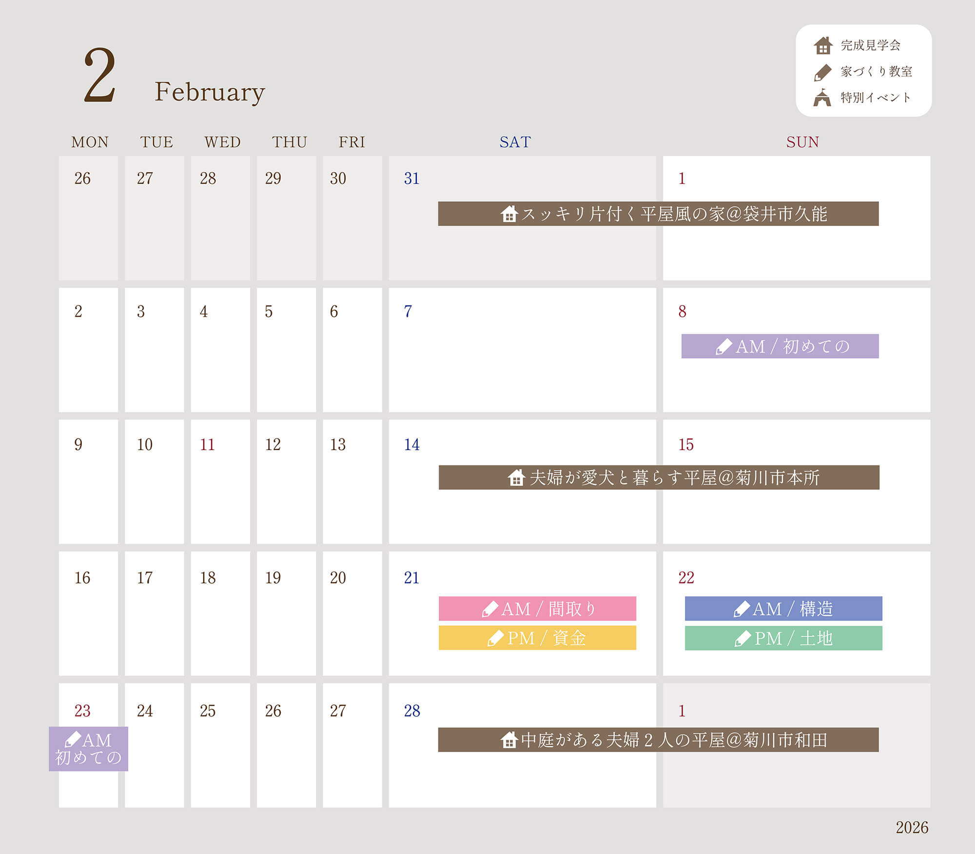 2月も見学会や家づくり教室など、イベントが盛りだくさん!