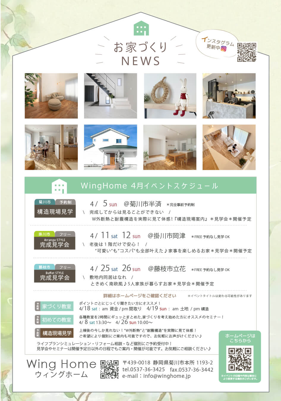 ウィングホームより4月のイベント情報をお届けします*