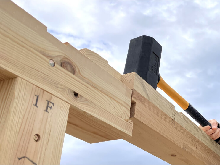 お施主様が現場に来た時にはだいたい1階の骨組みができあがっている状態で、