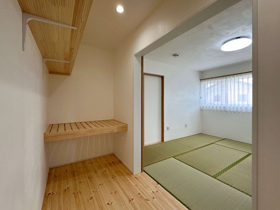 奥様:他人の住まいを見せてもらっていいのかなって思いながら見学に行ったのを覚えています。でも、そのお宅に小上がりの和室があって「こんなこともできるんだ。」って感動して、自分たちの家が欲しくなりました。それからは何度も見学会に行かせてもらったけど、どの家も木がたくさん使われていて良い香りがしていました。新築特有の嫌な臭いがしないのは漆喰の効果だということも教えてもらいました。
